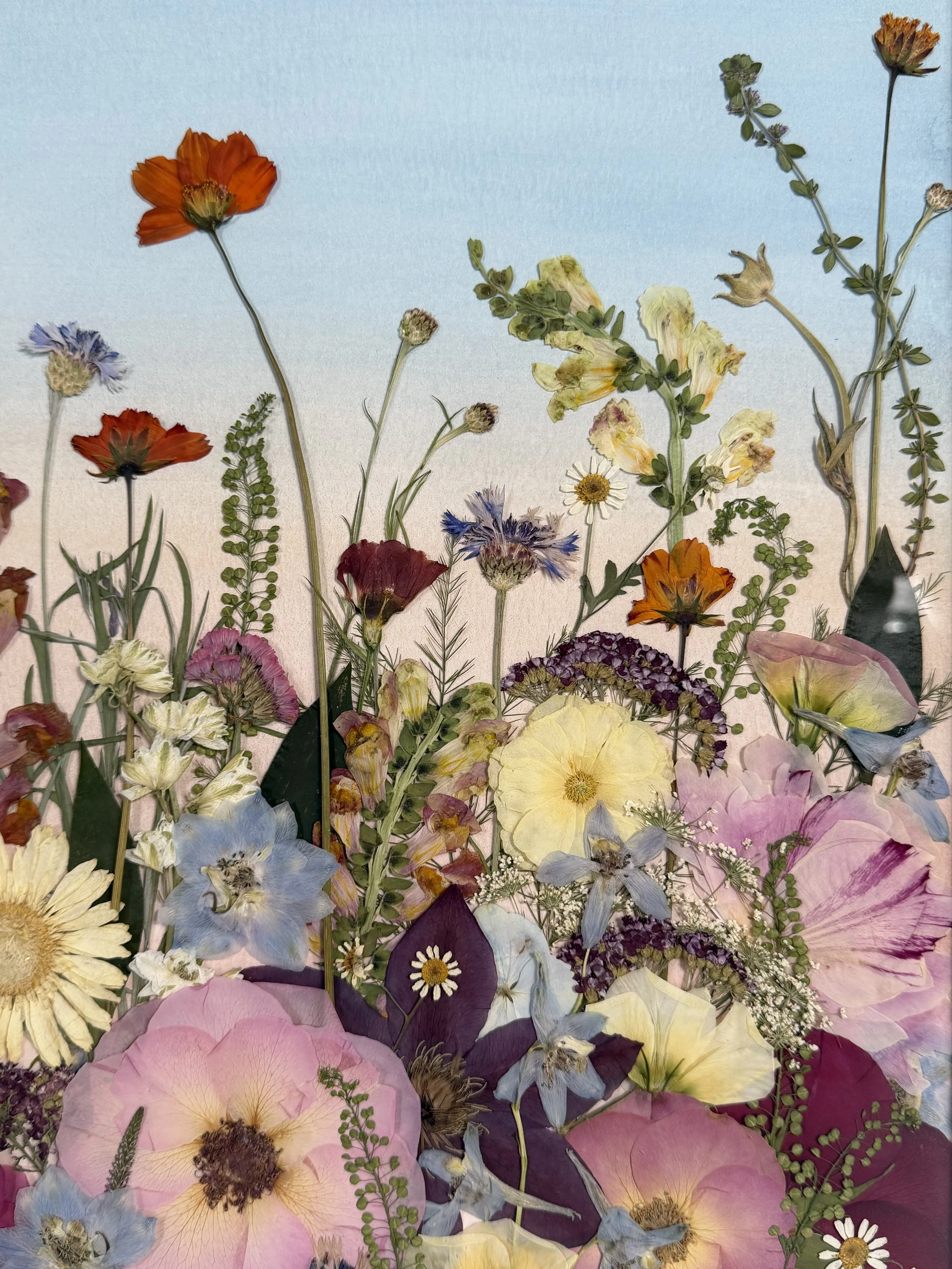 Florals are pressed and carefully designed between two glass panels. Additional colors and sizing available.
