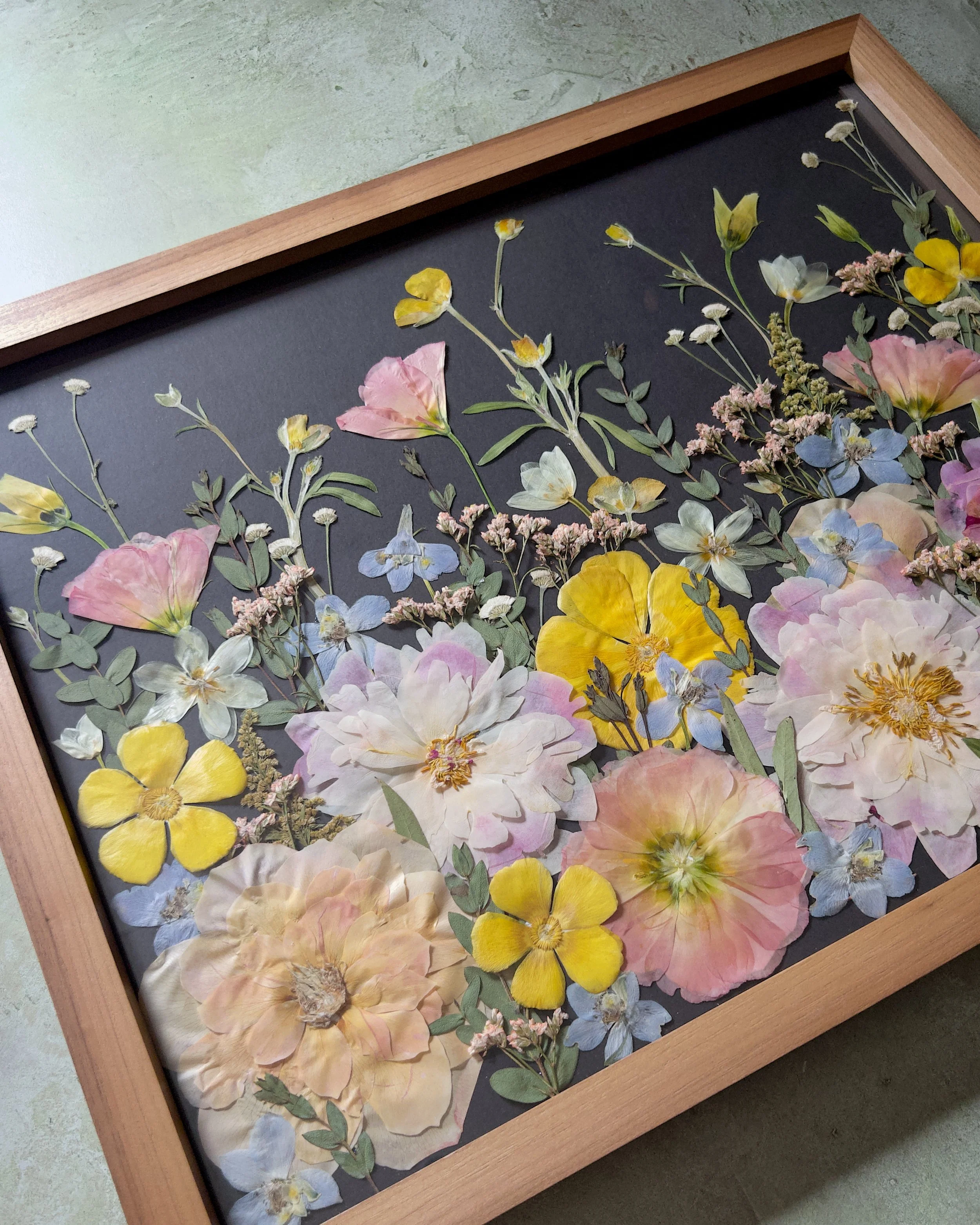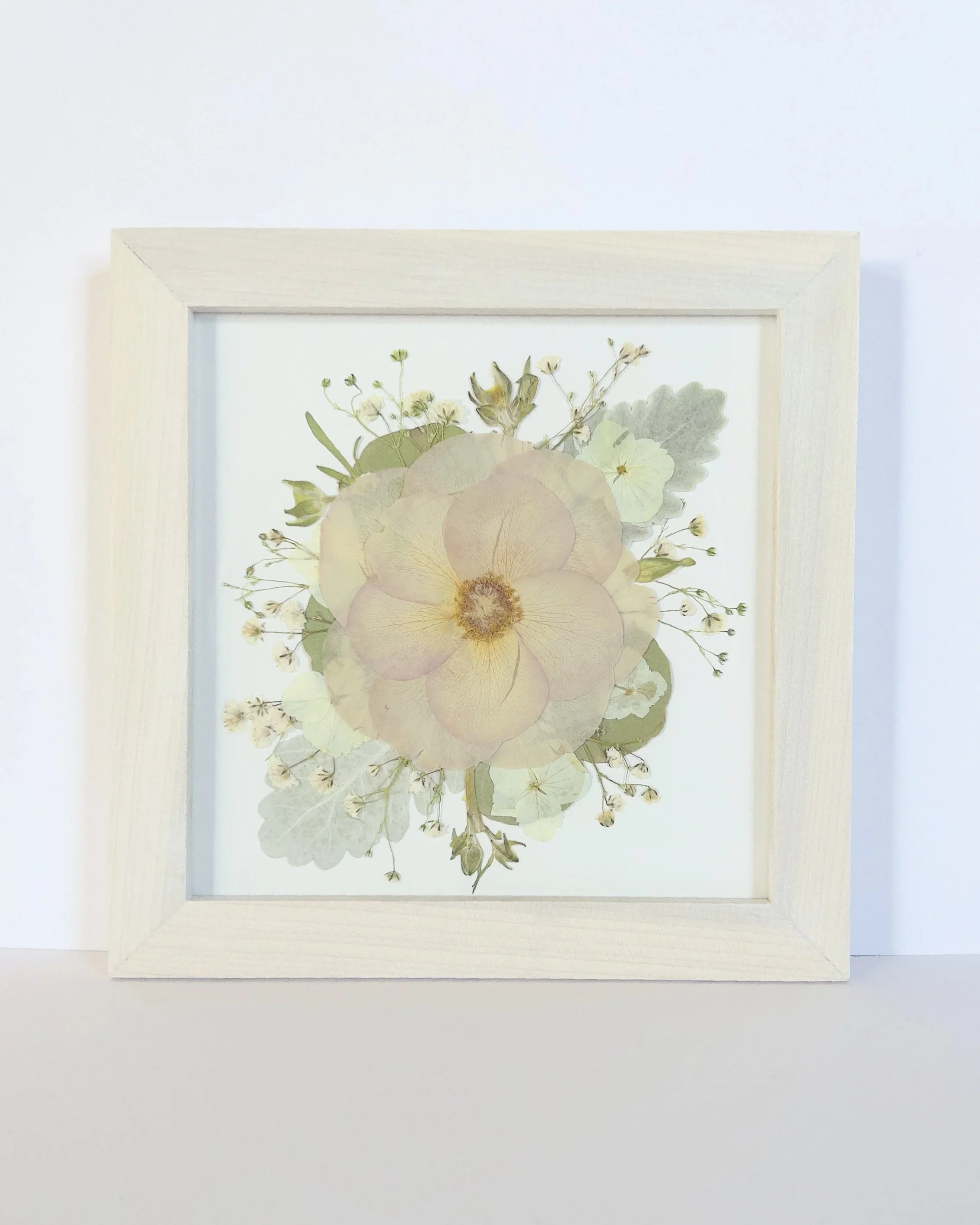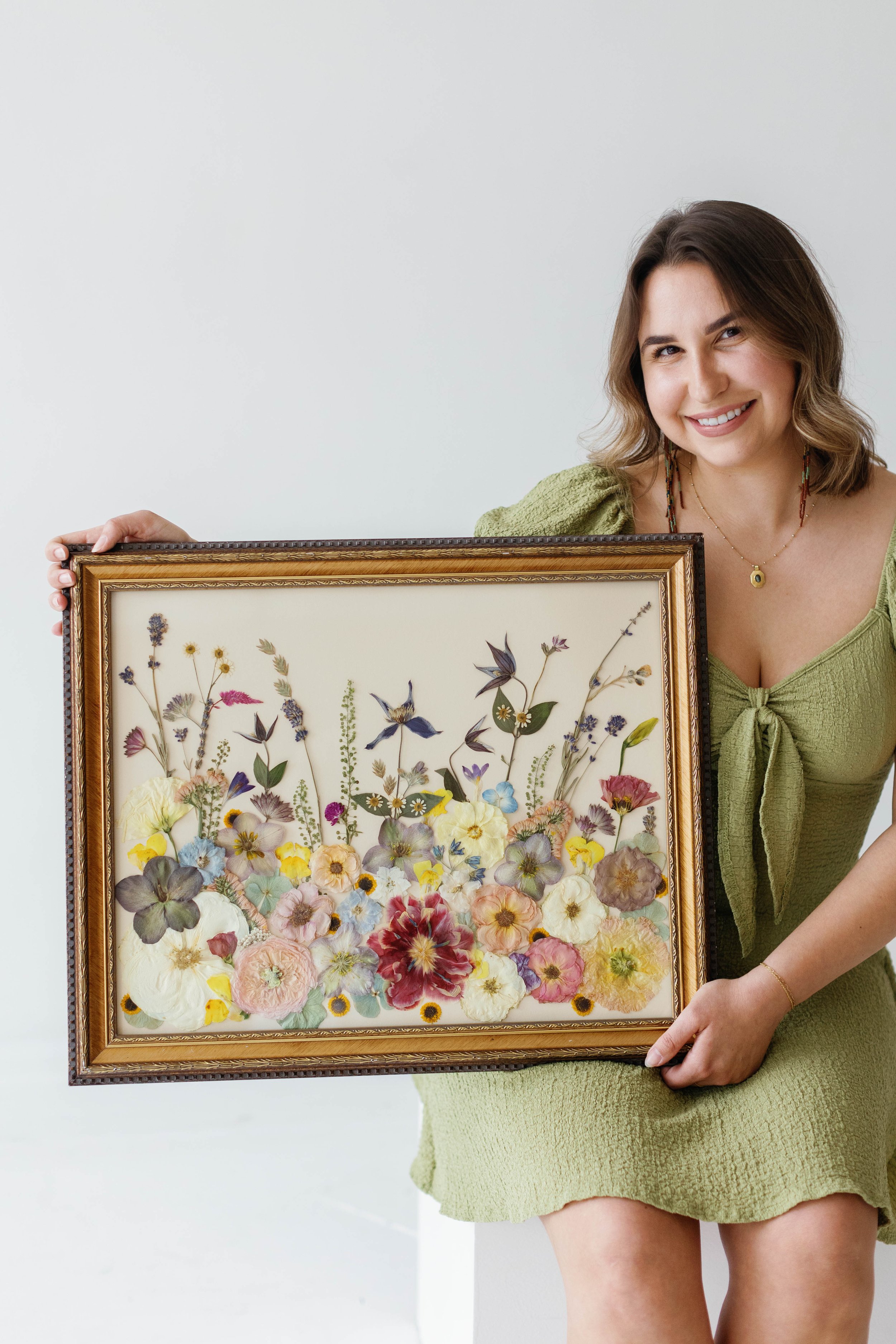 We’d be honored to preserve your cherished florals! At PF, we offer two beautiful framing options: “Our Collection” — handcrafted, custom hardwood frames made with love by our dad — and our Pressed Matted Frame section, thoughtfully sourced from a trusted supplier.
